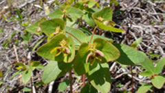 小仏城山での休憩は省略して早々に景信山を目指して小仏峠に降る。今日は日曜日で好天気の為多くの登山者が登ってくる小仏峠からは小仏城山に行く人と景信山に行く人の分岐点で東京方面の展望も有り休憩ポイントになっている。再び登りとなりスローペースで登って行く景信山に近くなると樹林の伐採で登山道も明るくなり展望も楽しめる。また陽射しが樹林の床に届く為多くの植物も見られる様になり登山の楽しみが増える。