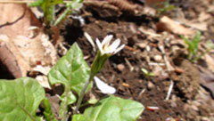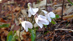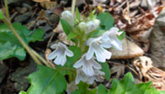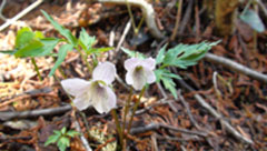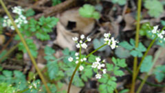 何時もは山頂目指して行くが今回は花が多く見る事が出来る沢筋の登山道をメインに歩いてくる。昨日の風雨が去って行き青空が広がり小仏城山山頂からは富士山もこの次期としては珍しく良く見える。日影沢の入り口付近まで車で入ってニリンソウの白い花の群生する日影沢林道を登って行く。沢筋に咲いている花は、ニリンソウ、トウゴクサバノオ、ツルカノコソウ、マルバコンロンソウ、コチャルメソウ、ラショウモンカズラ、ネコノメソウ類、スミレ類、他、多くの花が見られる。