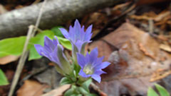 開けた明るい所でフデリンドウも数株咲いていた。ジュウニヒトエ、イカリソウ等も見ながら陣馬山直下の急斜面を上り詰めて標高855mの山頂に13:30分到着。