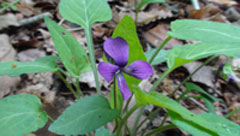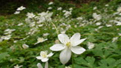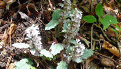 食後、裏道から和田峠に降りる。陣馬山山頂から10分ほど降った所にラショウモンカズラとニリンソウの群生地が有り
