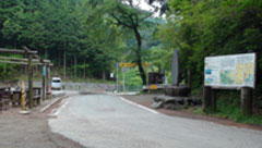 ここから道幅の狭い林道になるが4輪の車は通行できないが2輪のバイクは可能だ。小沢に沿ってしばらく下るとコンクリートの砂防ダムが出来ていてコンクリートの道となり