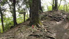 雨上がりの山道は足元の埃もなく新緑もみづみづしく実に気持ちよい。植林帯と雑木林の境を縫って行く様に登って行き登山道が緩やかになると尾根筋の道に出る。