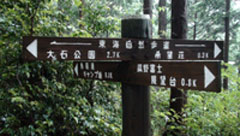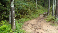 東海自然歩道の分岐まで戻り往路を引き返す予定でいたが、東海自然歩道を湯ノ山温泉まで行く事にする分岐点の所にロープに「この先通行止」標識が逢ったが駅の案内では通行できると聞いていたので湯ノ山温泉を目指す。菰野富士より標高の高いコブを3つほど越えるので汗をかいてくる。