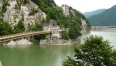此処で道を間違えてしまう黒部平に向って10分ほど登って気が付く4人のグループも引き続き登って来たが間違いに気づき一緒に引き返す。ロッジからは山道ではなく軽車両が通行出来そうなコンクリートの道でダム方向にしばらく行った所に標識があり。此処からは観光客様の遊歩道で遊覧船乗り場も有り鋼鉄製の吊橋を渡りトンネルを抜けてダムサイトに出る14:00到着