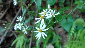 丹沢の峰峰を眺めたり持参した梨を食べながら小休止。下山は経ヶ岳山頂から経ヶ岳林道にくだり秋の花を見ながら曲がりくねった長い林道を歩いて戻る。