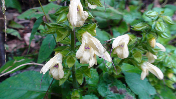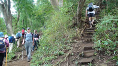 雨上がり直後のため登山道は少々濡れているが晴天なので気持ちが良い。我々以外に登山者の影はなくしずかな山歩きができる。一時間ほど登った所で尾根登山道と合流して登山者が多くなる。