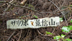 3連休最終日で天気も良いのでケーブルカー利用など高尾山口からのコースは混雑が予想されるので高尾山の裏山になる小下沢林道に車を駐車して小下沢林道を歩きザリクボ(旧キャンプ場)の所から小沢を渡り景信山に向かう。