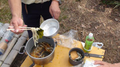 早速準備してきた食料等をザックより取り出して昼食の準備。今回もYAさんの手作りうどんをはじめおにぎり、パン等とビールで乾杯(運転者はノンアルコール)で満腹になる。
