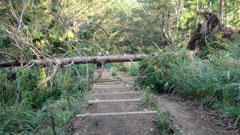 一丁平の桜並木やモミジの紅葉は未だ早く11月になる様だ。先月の台風の影響で大木が倒れていて登山道を塞いでいる所もある。台風の傷跡が至る所で見える。
