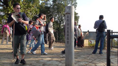 モミジ台への長い階段を登りつめた所でお湯を沸かしてコーヒーブレイクとす。モミジ台から僅かに下り階段を一気に登りつめて高尾山山頂に出る。