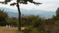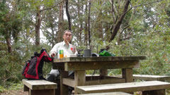 大垂水峠まで下り国道20号を橋でわたり南高尾尾根を登って行き30分ほどで大洞山の山頂に出る。丁度時間も12時で此処のテーブルで昼食にする。用意してきたインスタントのお赤飯、カップラーメン、果物、パン等ザックから出して準備する。