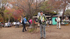 登山道は東海自然歩道の指定で良く整備されていて非常に歩きやすく迷う心配は全く無い。小仏城山山頂までは樹林帯だが意外と明るく足元には秋の花も見られる。人の声が聞こえて来ると小仏城山の山頂が近くなり10:15分赤く色づいたモミジの下で多くの登山者が休憩している山頂に到着。
