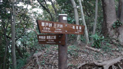 三沢峠から梅ノ木平らへ下る道に比べると此方はアップダウンが多く長距離を歩いて来て体力の低下した身にはキツイ。高尾山口の分岐を左に見送り直進して高尾駅に向かう。数回アップダウンを繰り返して三和団地の登山口に下る。住宅街の中を通り高尾駅に16:50分到着する。