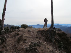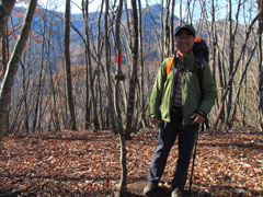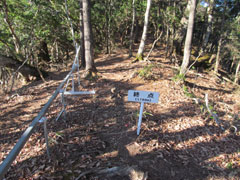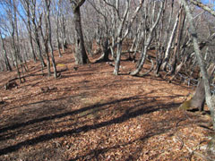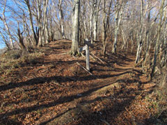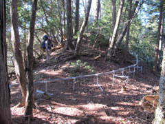 広い尾根なので迷いやすい所だ、踏み痕と目印のテープを確認しながら登る。