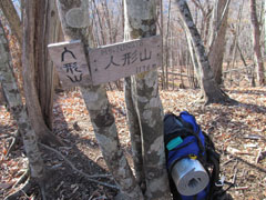 30分ほど急斜面を上り詰めた所にベンチが有り自然に休憩となる。ベンチからは多少緩やかになり一石山1007mの標識が有り、更に登って行くと人形山1176mの標識が有る。明るい広葉樹林の尾根筋を行く気持ちの良いコースで疲れも癒される。