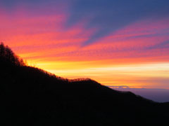 翌朝日の出前に朝食の準備、朝焼けの素晴らしい光景を眺めてから朝食を済ませて各人が小屋を出発して行く。私たちが最後となったので部屋の掃除を簡単に済ませて一晩お世話になった酉谷山避難小屋を後にして天目山(三つドッケ)を目指す。