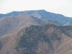左手には石灰岩の採取で山腹を大きく削り採られた天祖山の尾根筋と後方には鷹巣山から七つ石山、雲取山へ続く尾根筋が見える。雲取山から僅か右下には赤い屋根の雲取山荘も見える。右手には小川谷を隔てて七跳山、酉谷山など長沢背稜の山並みが続き酉谷山の右斜面に本日泊まる酉谷山避難小屋も木々の合間から見える。