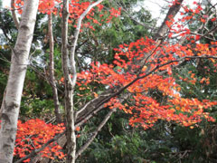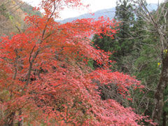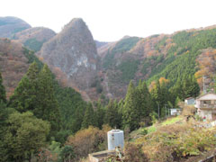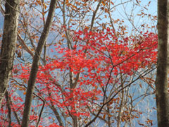 滝入の峰の東側を通過して植林帯に入りジグザグに急斜面を降り民家の脇を抜けて日原に出る。車道を一石神社まで歩いて戻る途中、渓谷の紅葉、稲村岩の奇峰等を見ながら一石神社の駐車場に戻る。SAさんの案内で初めての避難小屋泊まりを体験して天候も恵まれて非常に充実した山歩きが出来る。