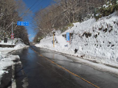 意外とどうろの状態が良いのでチェーン無しで柳沢峠まで行けそうだが途中の一之瀬でチェーンを装着して柳沢峠まで行く。大菩薩嶺への登山口は積雪が50センチほどありルートもハッキリしないのであきらめて柳沢峠を通過して大菩薩峠の登山口の上日川に向ったが裂石から500m行くとゲートがあり積雪で通行止めになっている。