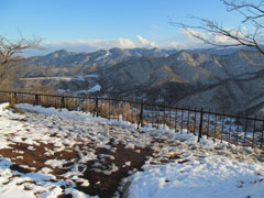 八高線の金子駅で友人のAさんの車に乗り込んで一路、奥多摩を目指す。以前からの予定で大菩薩嶺に上る計画で柳沢峠に向ったが数日前からの降雪で奥多摩駅を過ぎると雪景色に一変する。道路は除雪されているが日陰の所は雪が残っている。道の駅丹波で休憩、温かい麺類を食べて体を温める。