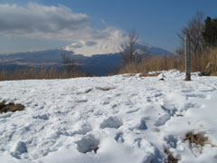床の雪と富士山も良く見えるので車で5分足柄峠まで行き郭跡に上がって富士山を目前に仰いでくる。今日は天気も回復して短時間で雪山気分を楽しめた。