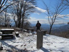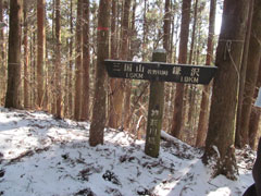 木材搬送用の重機を入れる為道幅は広くなったが路面が不安定で登山者には悪路だ。約30分悪路を登りきって佐野川峠に出る。此処からは尾根筋の登山道で今日は雪で真っ白になっている雪を踏みながら気持ちよく緩やかに登って行く。10:40分甘草水広場に到着。富士山の展望を期待して来たが生憎雲で山頂の一部しか見えないが視界はよく周りの山々は良く見える。