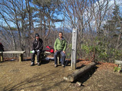 食後すぐ隣のピーク(生藤山)へ向う。直接登らず巻き道を回って反対側から生藤山山頂に登る。山頂からは連行山、醍醐丸、陣馬山が目前に見える。天気が良く陽射しが暖かくベンチに腰を下ろししばし春を感じる生藤山山頂で休憩する。