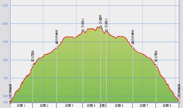 相模原8:00⇒藤野⇒石楯尾神社⇒林道登山口9:50→佐野川峠10:20→甘草水広場10:40→三国山11:05→生藤山12:00→三国山12:10→甘草水広場12:30→佐野川峠12:40→林道登山口13:00⇒藤野⇒相模湖⇒橋本⇒相模原