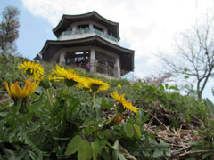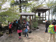 権現山で桜と展望を充分見たので、弘法山に向う。桜祭りは終わったが未だ充分桜も残っていて花見も出来る。露天商も3件ほど出ていて僅かながらお祭り気分に浸れる。緩やかな登山道で身近な所にある為登山口も多く各方面から登ってくる。家族連れやグループなど結構多くの人が登ってくる。弘法山山頂も小学生の団体で賑やかな声が響きわったっている。珍しく山頂に井戸(乳の井戸)がある。言い伝えが案内板に書かれている。鐘楼もあり時刻を知らせる「時の鐘」として江戸時代から昭和まで秦野周辺に響き渡っていたらしい。