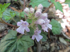 道なりに歩き左に日影沢林道を見送り線路の下を潜って直ぐに右手の車道(小下沢林道)に沿って行く。左手に小下沢の流れに沿って歩く林道の到る所に多くの花が見られる。 セリバヒエンソウ、カキドウシ、スミレ各種、ヤマブキ、ニリンソウ、イチリンソウ、ラショウモンカズラ、キケマンソウ、ムラサキケマンソウ、ジロボウエンゴサク、ヤマルリソウ、ネコノメソウ数種、等多くの華を見られる。