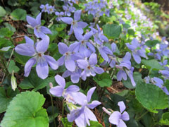 沢から離れて高度を上げるとスミレ類、ヤマブキ、モミジイチゴの限られて花になり、植林帯に入ると、ときおりスミレ類が咲いているが殆んど花は見られなくなる。景信山山頂付近の伐採があり眺めが結構良くなって来た東京方面が霞んで見えるがスカイツリーの影は確認出来なかった。景信山には300名ほどの登山者等で賑わっている。