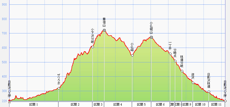 日影沢バス停→小下沢→景信山→小仏峠→小仏城山→一丁平→日影沢→日影沢バス停