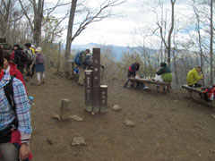 三週間ほど遅れているようだ天気はあまり良くないが結構大勢の登山者が来ている。三頭山は名前の通り三つの山頂があり東峰1527m、中峰1531m、西峰1524mで中峰が一番高いが山頂が狭いのと展望が悪いので広くて展望の良い西峰の方に多くの登山者が休憩や昼食をしている。