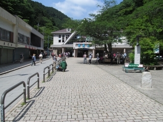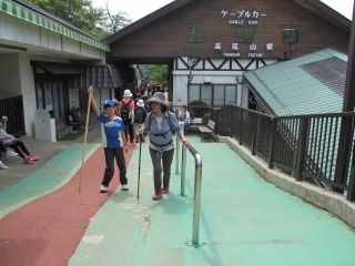 清滝駅前で記念写真を撮ってから山頂を目指す。