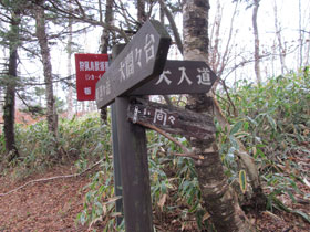 岩場の登りとなり上り詰めたところに八海山神社の社があり展望が良く関東平野が広がっていて目線を下げるとふもとは錦の紅葉が輝いている。小休止後釈迦ヶ岳>を目指す。矢板市の最高地点を越えて60mほど降り僅かに登ると剣が峰の山頂の分岐点の標識がある。左に折れて釈迦が岳を目指す僅かにアップダウンしながら行き釈迦ヶ岳山頂直下から急登になり息を弾ませて上り詰めると右、鶏頂山からの登山道と合流して釈迦ヶ岳山頂に出る。。