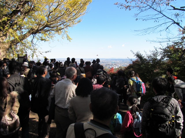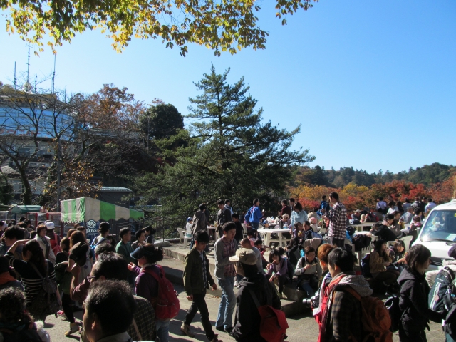 金毘羅宮展望台でゆっくりと休憩したいところだが1号路を登ってくる人が多く休憩しているので早々に高尾山を目指して1号路を行くが途中のリフト駅とケーブル山頂駅は大混雑で人をかき分けて行くことになる。