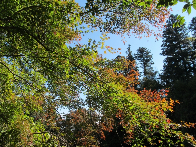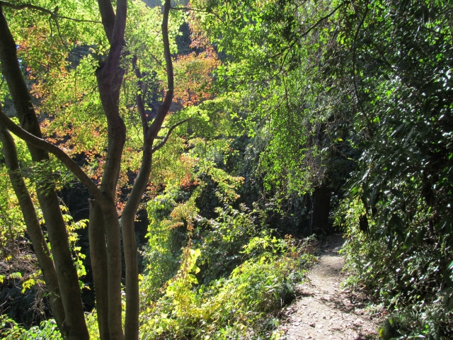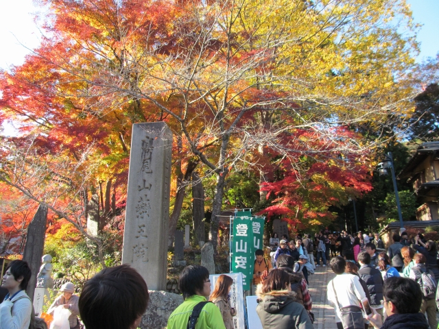 このまま山頂まで混雑していそうなので浄心門の所から左に下り3号路を利用して山頂を目指す。3号路は比較的人影は少なくゆっくり歩ける。紅葉も見ごろで展望も良いので本日は混雑する高尾山頂は避けて5号路から稲荷山コースを下る事にしたがこちらも多くの人が利用していて休憩ベンチの空いているところはなくひたすら清滝駅まで下る事になる。