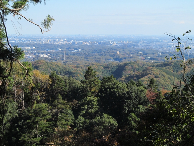 本日の高尾山へのコースはあまり歩く人がいない旧登山道を歩いてみる。登山口は甲州街道の上椚田橋を過ぎて僅かに行くと高尾山ちか道の石碑したがって右に入って行く。民家の脇を行き。ろくざん亭の大きな建物が見えてくる。さらに先に行くと民家に突き当たりを左に回り込むように登って行くと山道となりしばらく登りが続く。岩肌の斜面や階段もあるが歩く人が少ないので少々荒れたところもあるが道筋はしっかりできているので迷うことはなさそうだ。登り詰めて樹林帯を抜けると明るくなって金毘羅宮展望台に出る。