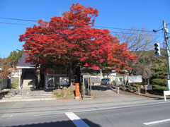 馬引沢峠の焼却処理場金網フェンス、警察犬注意とマムシ注意の看板がある網目のフェンス、お寺の万年塀、ゴルフ場の金網フェンスと右手側は見たくない所が多くあるが予想より明るい樹林帯の道で紅葉、黄葉で楽しめる。ゴルフ場を過ぎて僅かに登ると休憩舎がある浅間山235mに到着。此処で水分補給で小休止する。