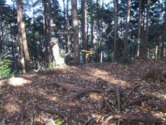 最後の民家の所で犬に吠えられて足早に過ぎると登山道らしくなり樹林帯の中を登って行く。右手前方の愛宕山を経由して登る予定でいたが分岐点が見当たらず尾根筋の道に出て左方向に向かうと直ぐに展望のない要害山を通過する。至る所に標識があるが、愛宕山や要害山の標識は無く有志が作成した小さな要害山と書かれた標識があり此処が要害山と確認できる。
