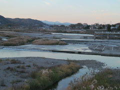 浅間山を降り郷土資料館の所で多摩川の堤防に出て200m程歩いた所の歩行者専用の橋があり、羽村の堰を眺め目線を上げれば奥多摩の山並みが暮れゆく空に峰を連ねている。今回の山歩きは予想外の人が少なく静かな山歩きが出来たがマンテンバイクの練習コースにも成って居るようだ。16:12分羽村駅に無事到着。