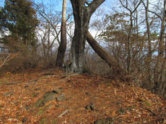神楽山は展望がないので直ぐに引き返して厄王山(御前山)に向かう。倒木を潜って20分ほどで厄王山(御前山)に着く。大きな石が露出した山頂で南側の展望が良く休憩に適した所だ。生憎未だ雲が多く富士山は見えないが九鬼山が見えてくる。暖かいコーヒーで水分補給と休憩していると青空が次第に広がって来るが南方面は未だ厚い雲で遮られている。