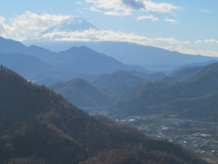 本日のコースで此処が一番の展望が良く360度の景色が見える。今まで雲に隠れていた富士山もほぼ全容が見えてきて菊花山山頂からの展望を十分楽しめる。あまり展望が良いので30分ほど山頂で過ごしてしまう。下山道は途中で分岐が有ったが富士山が良く見れる無辺寺コースを利用して降り、大月駅に13:50分到着する。