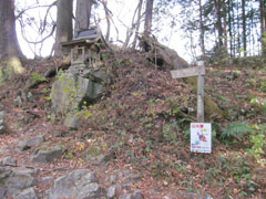 急な上りは無くゆっくり着実に高度を上げて行き約60分ほどで林道に出る。林道の手前に大根山の神の標識があり小さな社が有る。此処から川苔山方面に林道が続いているが何処まで行けるか?、登山道は林道を越えて尾根筋の道を登って行く。途中、オオダワ経由川苔山の分岐を右手に見送ってどんどん登って行く。