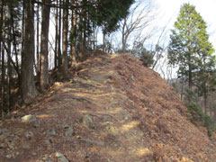 左手方向に本仁田山が近くに見えてきて登山道が緩やかになると、防火帯に出て左方向に続く防火帯の斜面を登って行く、少々きつい登りだが登りつめると標識は無いがコブタカ山で右手にオオダワ経由川苔山の分岐点の標識もある。防火帯の方向は展望があるがその他は樹林で遮られて展望は悪い。