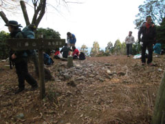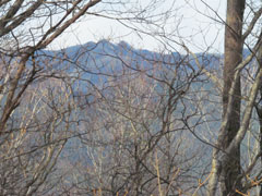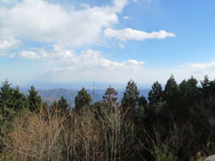 コブタカ山から緩やかに下り登り返す尾根道からは長沢背稜の峰々が樹林の間から見え隠れする。石灰岩採取で山肌を削り取られた天祖山の左後方には雲取山も見えるが樹林が邪魔をしている。本仁田山山頂での展望を期待して来たが期待が外れる。東京方面の方向のみ開けているが北西側は植林帯で陽も遮られていて、南側の斜面の陽の当たる所で20名ほどの登山者が昼食休憩をしている。