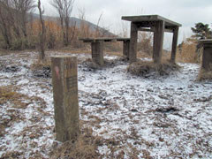 天気の回復は望めないので山頂を後に引き返す。登りではアイゼン無しで登って来たが降りはアイゼンを付けて降る。幸いスリップしないで登山口まで無事に辿り着く。下山途中の馬の背でホットーコーヒーを飲みながら休憩し展望台の所から左回りのコースで十里木駐車場に戻る。