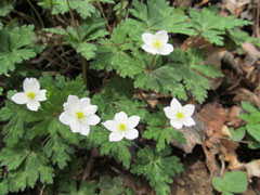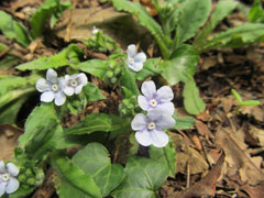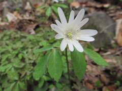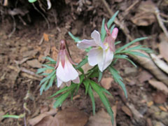 日影沢入口の民家の庭にカタクリ、ショウジョウバカマ等咲いていて見学者が10名ほど居る。再び車道を歩いて行き煉瓦造りのガードを潜り右手に折れて小下沢林道を行く。小下沢梅林も一般に開放されていて観梅者の姿が見える。ザリクボまでに見られて花はニリンソウ、スミレ類、ヤマルリソウ、アズマイチゲ等咲いていたが未だ咲き始めで花株が少ない。