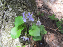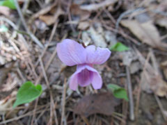 今回は珍しい色のスミレに出会える。 、今まで山歩きで色々の種類のスミレを見て来たが桃色スミレと斑スミレを見たのは初めてだ。