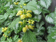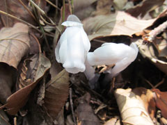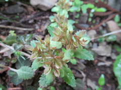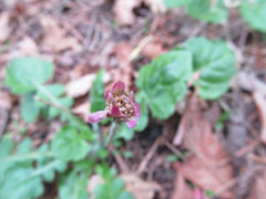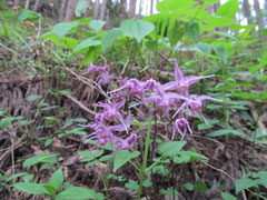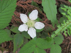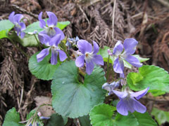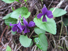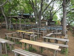 水場を過ぎると景信山南急斜面をジグザグに登って行く。植林帯の足元には遅咲きのスミレ、クサイチゴの白い花、イカリソウ等が見られる。近年伐採されて明るくなった縦走路に出て巻道を利用して景信山を北側から登り山頂に出る。何時もは賑わう山頂は今日は人影も少なくしそっりとしている。